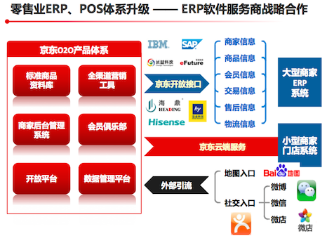 京东最近公布的O2O战略当中,聚焦于改造传统零售的信息系统与物流体系这两大核心能力的改造,涉及到包括品类扩展、服务延伸、外部流量合作、全渠道会员、本地物流服务等五个方面。在琪哥(liuqi-guancha)看来,真正的杀手锏有两个,一是京东帮你打通ERP,二是帮你提升仓储配送能力,都是要解决零售后端的核心能力问题。