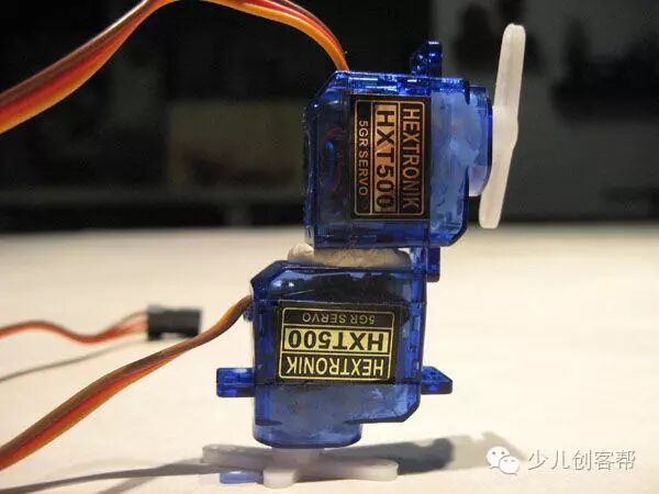 Tip # 2 - 我用胶把两个舵机黏合到一起,足够结实而且当你其他例子要用到舵机的时候你能够很容易的拆开