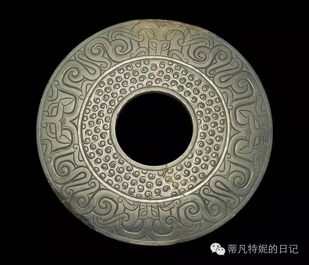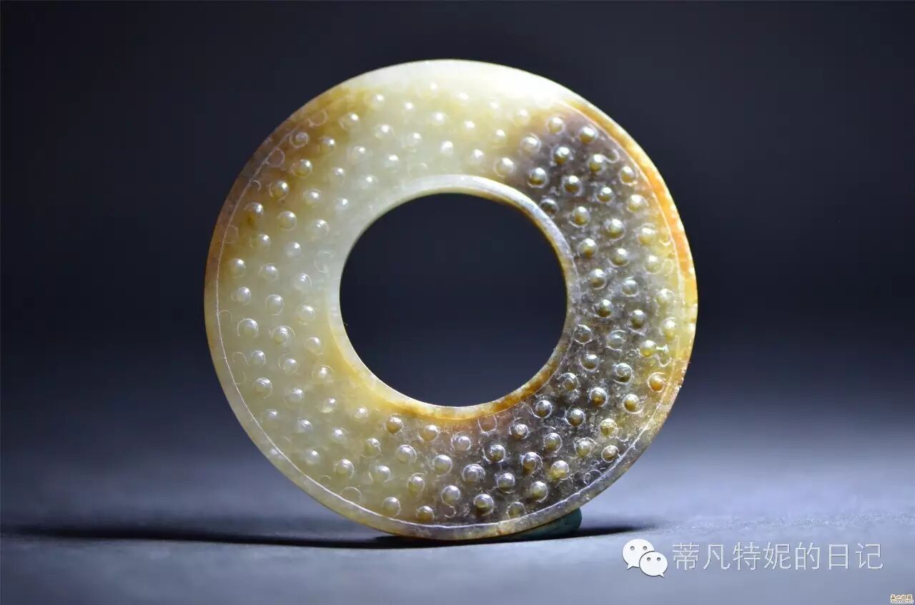 玉瑗****(音:yuàn):也是中间有圆孔的圆形板状体,但边窄孔大,即 “好倍肉,谓之瑗” 。古代用作请召信物,引导君王上阶之物。也作佩饰、绳带的枢纽。