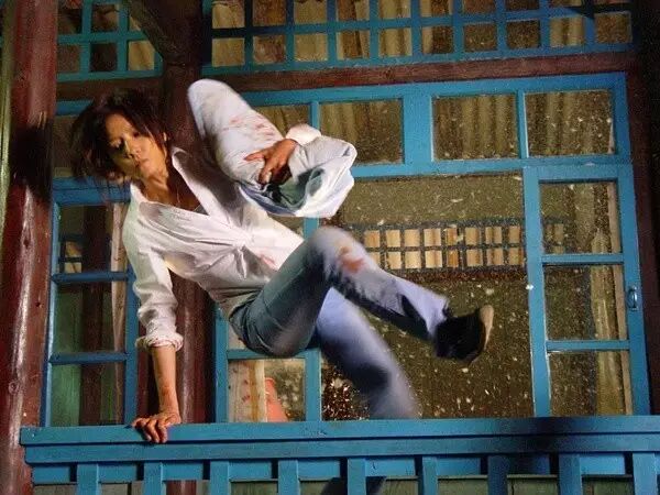 《超体》里的Lucy报复对自己施暴的黑社会头头,方式直截了当,闪亮的双刀直插他的手掌,吓得黑老大眼睛上的黄瓜片都掉落了。